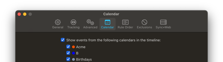 Please note that this means that a project’s position in the rule order settings may play a role, but the project’s actual rules do not apply to calendar events at all; they are only relevant for categorizing app usage.