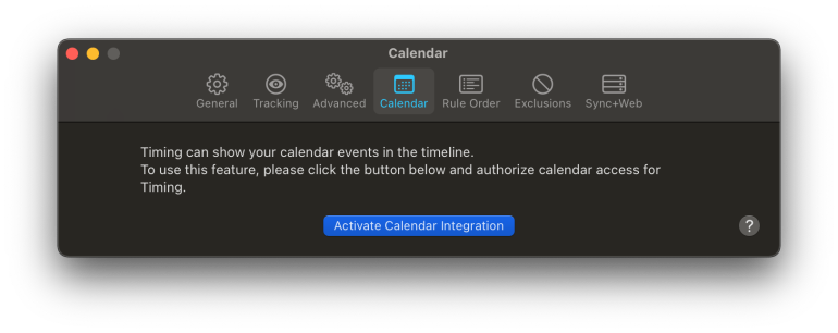 To set up the calendar integration, click the corresponding button in the Timing preferences or this link, then grant the required permissions: