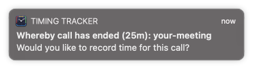- It is possible that calls are being detected, but no title can be detected for the call. Unfortunately, it is not possible for Timing to detect meeting titles for all kinds of video call services. In those cases, Timing should still show a notification, however. If you are in doubt about whether a particular service is supported, please feel free to reach out and ask.
